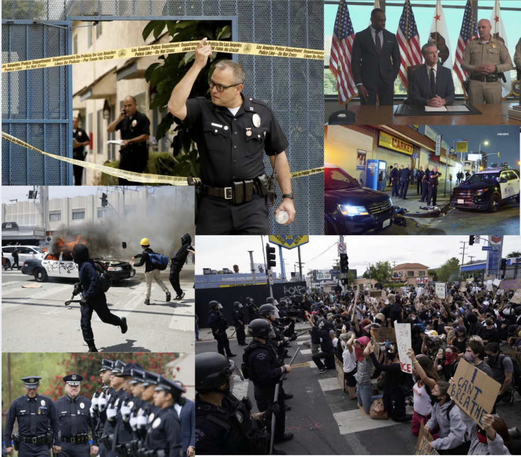 Collage of Los Angeles Police Department and crime images created on Canva.